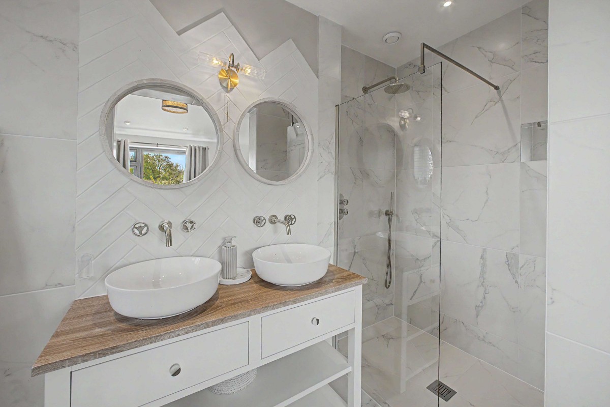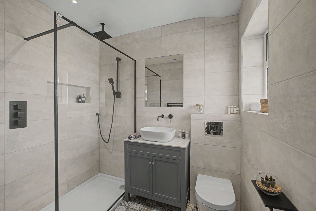 The remaining bedrooms are all well-proportioned. Two share a modern family bathroom fitted with both a separate shower and bath, while the fourth bedroom benefits from its own private ensuite with a large shower.