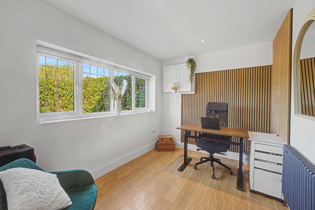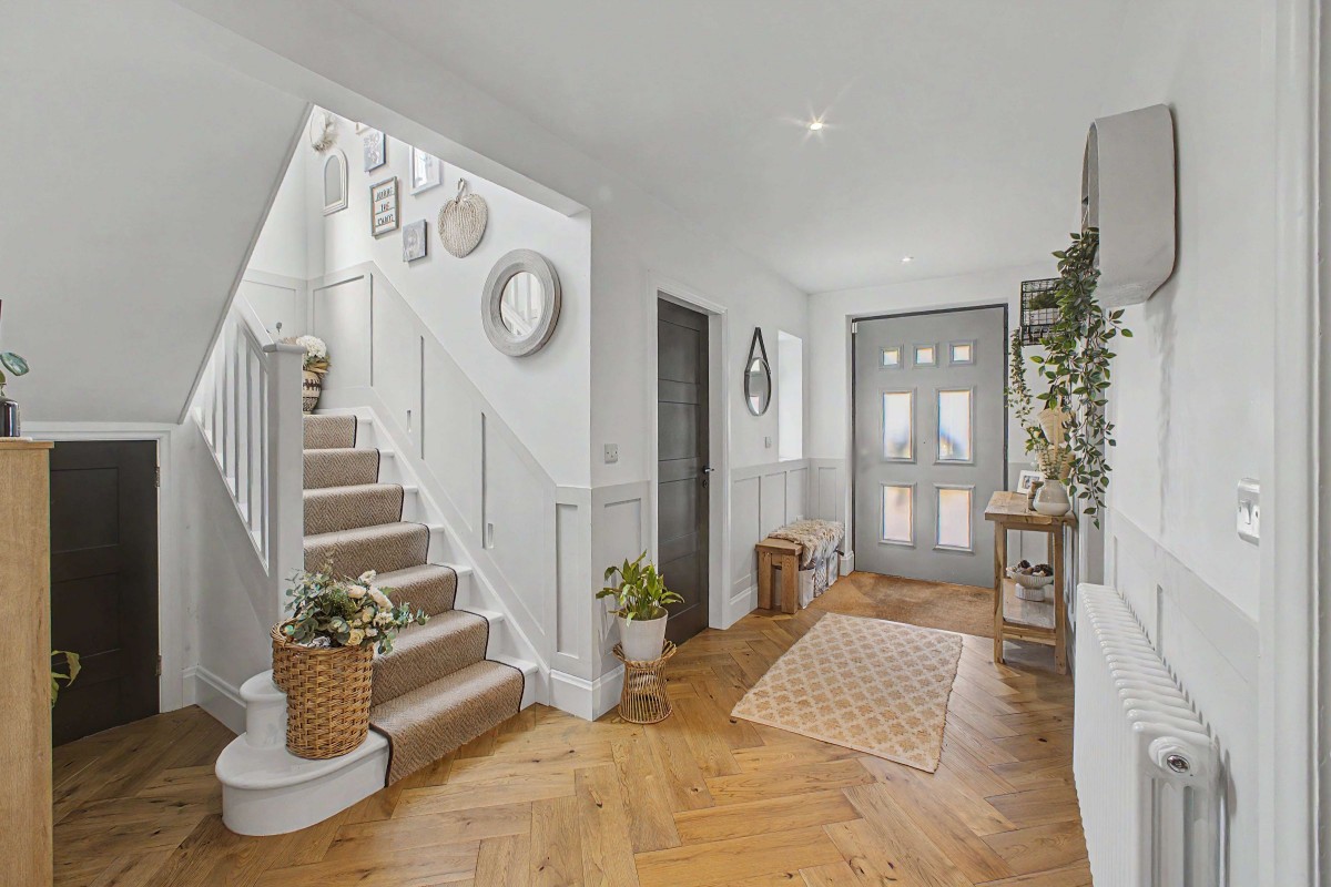 Upon entering, you are welcomed into a spacious and light-filled hallway. To the right, there is a stylish downstairs WC, while to the left, a large bright office provides the ideal work-from-home space. A separate, cleverly concealed utility room is also accessed directly from the hallway.