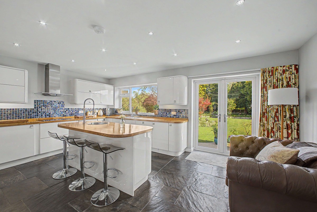 The open plan kitchen is the natural heart of this home - a spectacular, light-filled space that brings together cooking, dining, and socialising under one roof. Fitted with high-specification appliances and finished with premium materials, the kitchen is as practical as it is beautiful. The open layout encourages a relaxed, convivial atmosphere whether it's a Saturday morning breakfast or a dinner party. Double doors draw the eye directly to the garden, seamlessly extending the entertaining space outdoors when the weather allows.