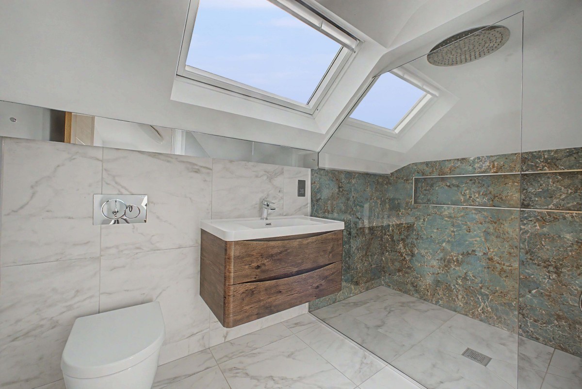 The first floor continues to impress, offering five well-proportioned bedrooms arranged around a central landing. Two of the larger bedrooms benefit from en-suite facilities, while a contemporary family bathroom serves the remaining rooms. Bedroom six is currently utilised as a second home office, demonstrating the flexibility of the accommodation and its ability to adapt to changing needs, whether for work, guests or additional bedroom space.