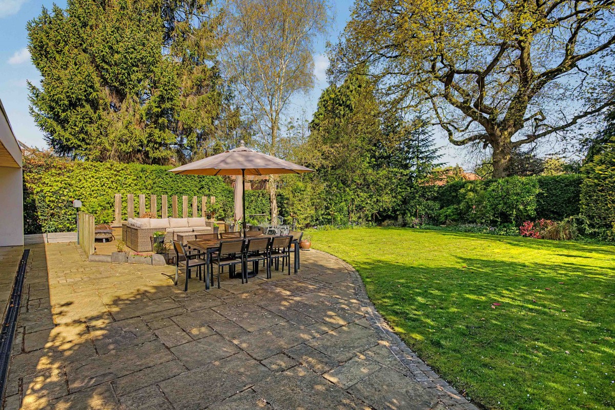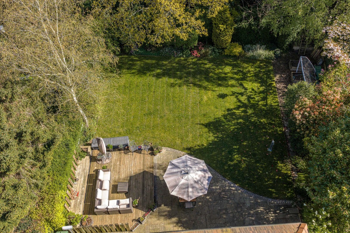 Externally, the rear garden provides a tranquil and secluded setting that perfectly complements the home. Having been established over many years, it features mature trees, dense hedging and thoughtfully planted borders that create a high degree of privacy rarely found in such a central Hale location. The generous lawn offers space for family use, while a paved terrace provides an ideal setting for outdoor dining and entertaining. The overall effect is one of calm and seclusion, with the garden feeling like a natural extension of the living space.