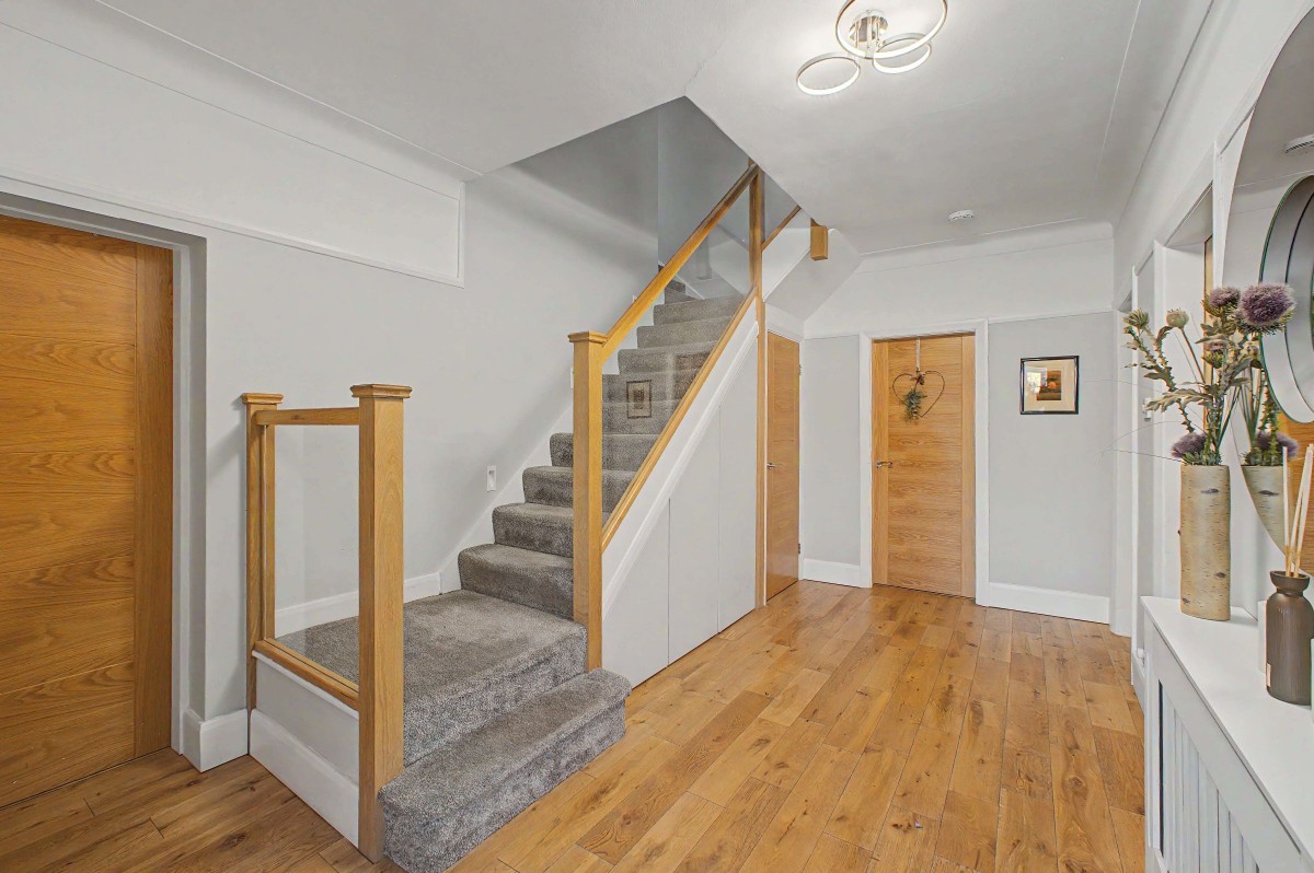 Set behind established boundary planting, the property enjoys an immediate sense of privacy and presence. The approach is discreet yet impressive, hinting at the generous proportions and carefully considered layout that continue throughout the home.