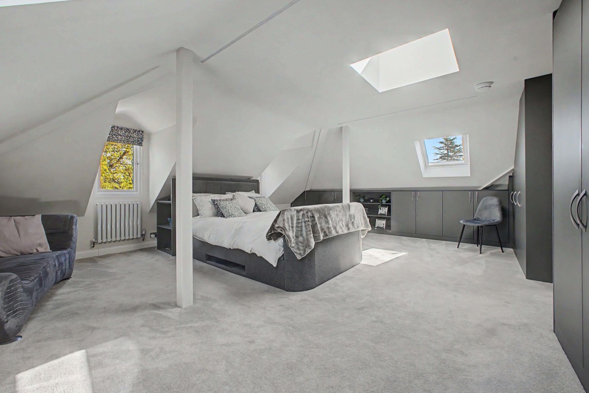 The top of the house is dedicated to a superb master suite, creating a private retreat set apart from the rest of the house. Generously sized and filled with natural light, this space includes a spacious bedroom offering both comfort and a sense of luxury.